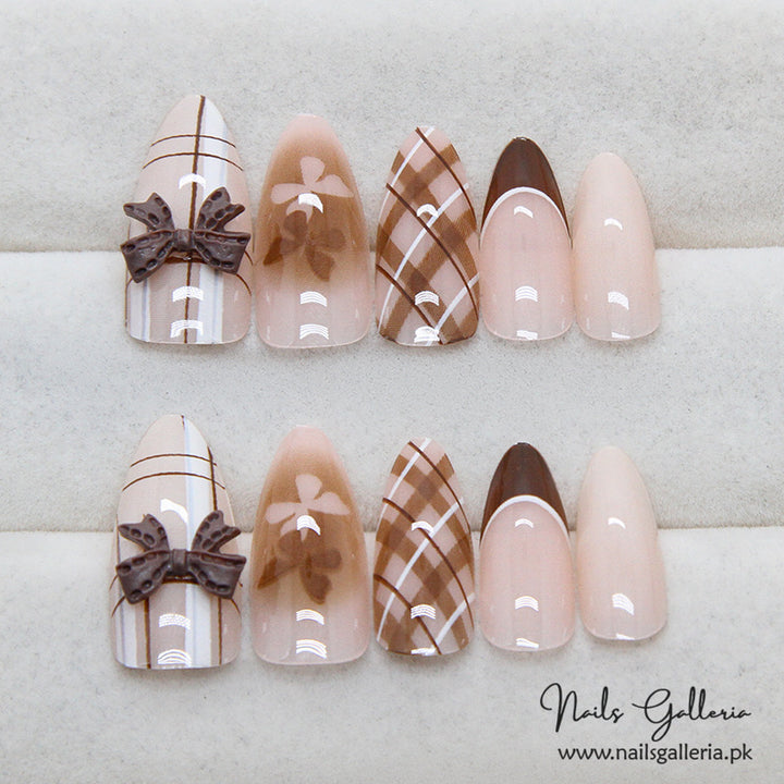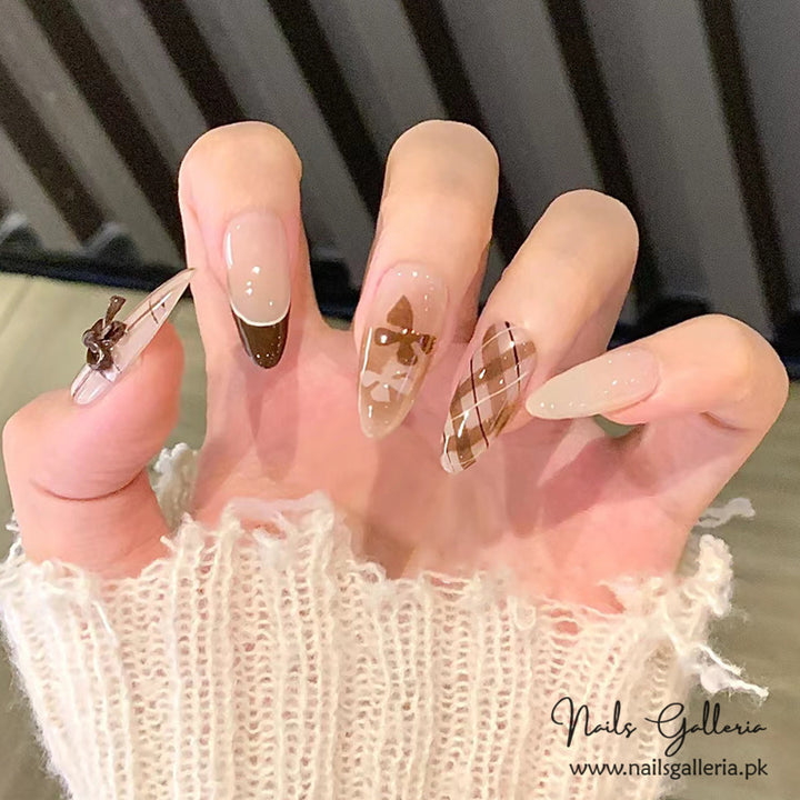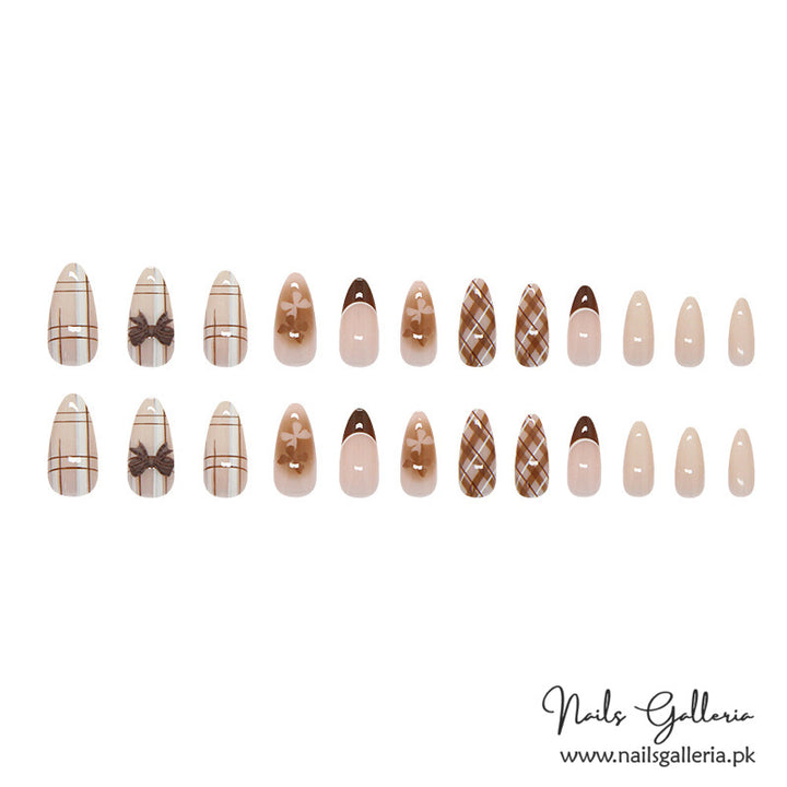 🎀 Autumn Plaid Elegance Press-On Nails (24 Pcs) - Free Nail Kit Included