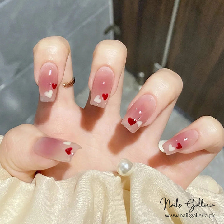 π Lovely Hearts β Press-On Nails (24 Pcs) - Free Nail Kit Included