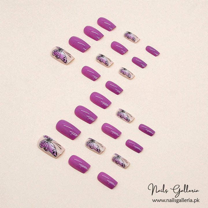 π Purple Flutter β Butterfly Accent Press-On Nails (W481) π¦