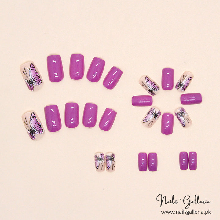 π Purple Flutter β Butterfly Accent Press-On Nails (24 Pcs) - Free Nail Kit Included