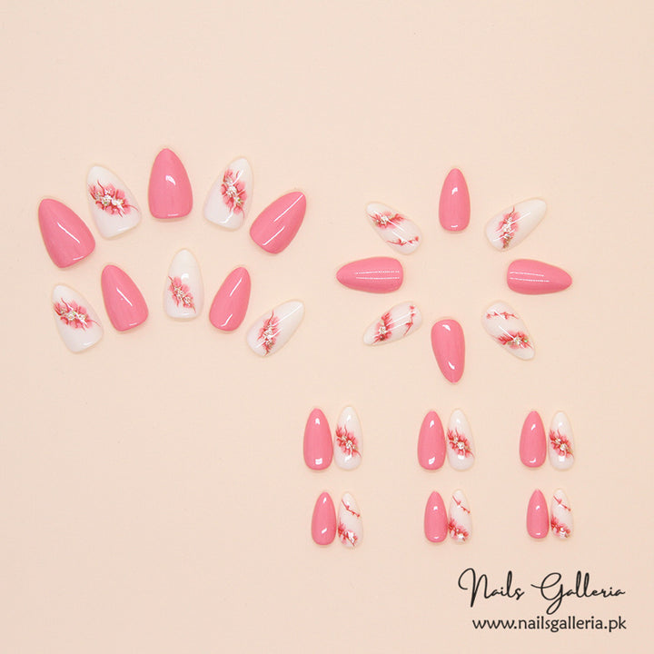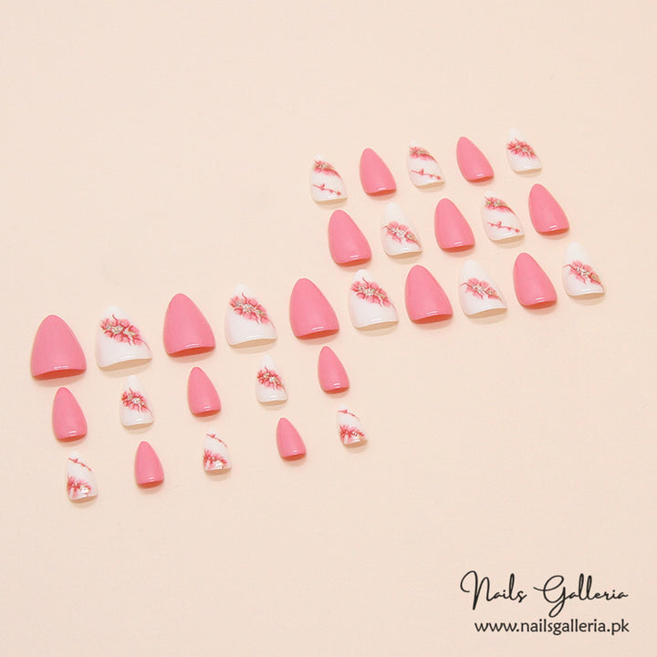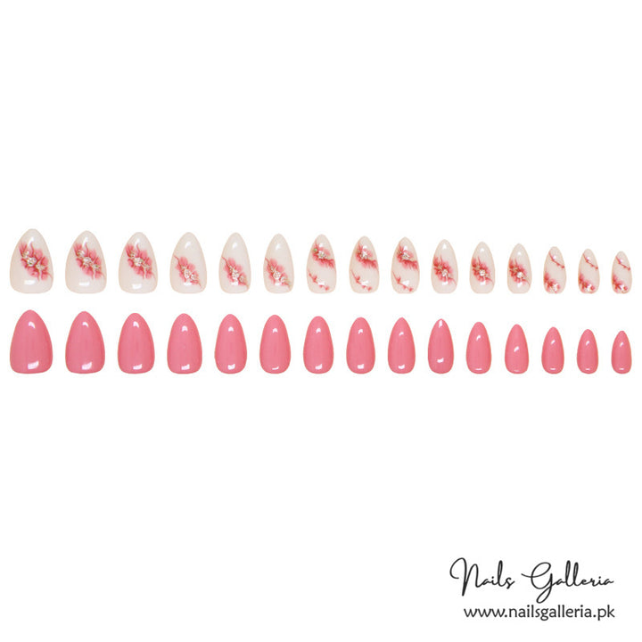 Blooming Elegance – Press-On Nails (24 Pcs) - Free Nail Kit Included