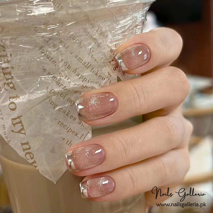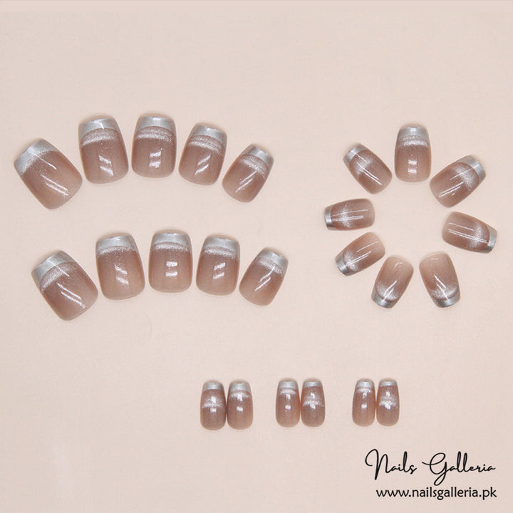 Crystal Cat's Eye Press-On Nails (24 Pcs) - Free Nail Kit Included
