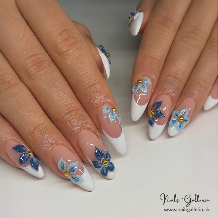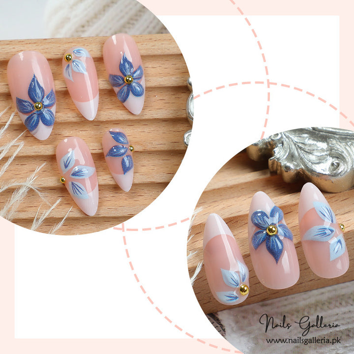 Delicate Floral Motif – Press-On Nails (24Pcs) - Free Nail Kit Included