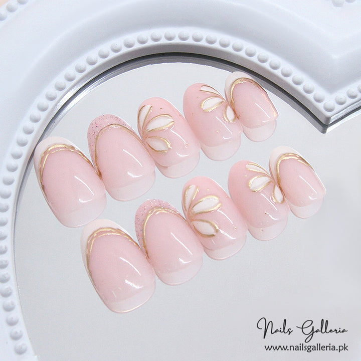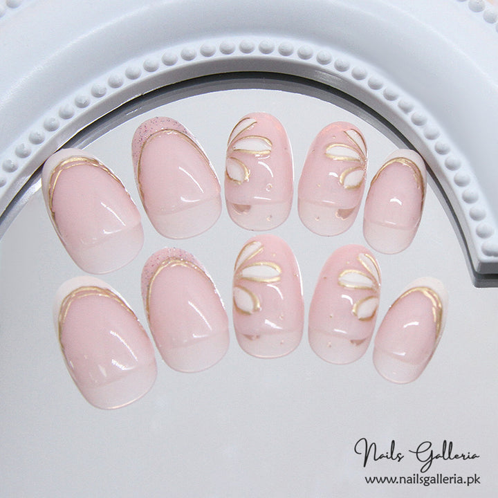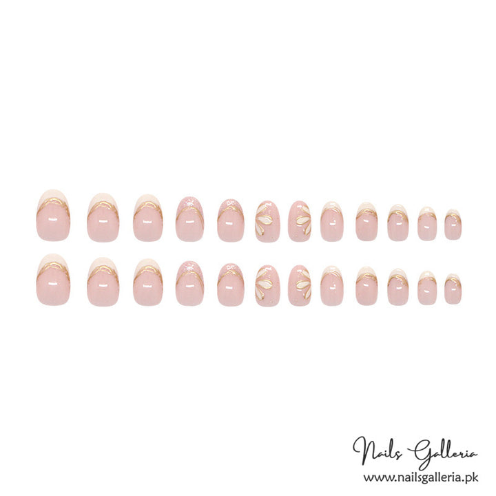 Delicate Petals Press-On Nails (24 Pcs) - Free Nail Kit Included