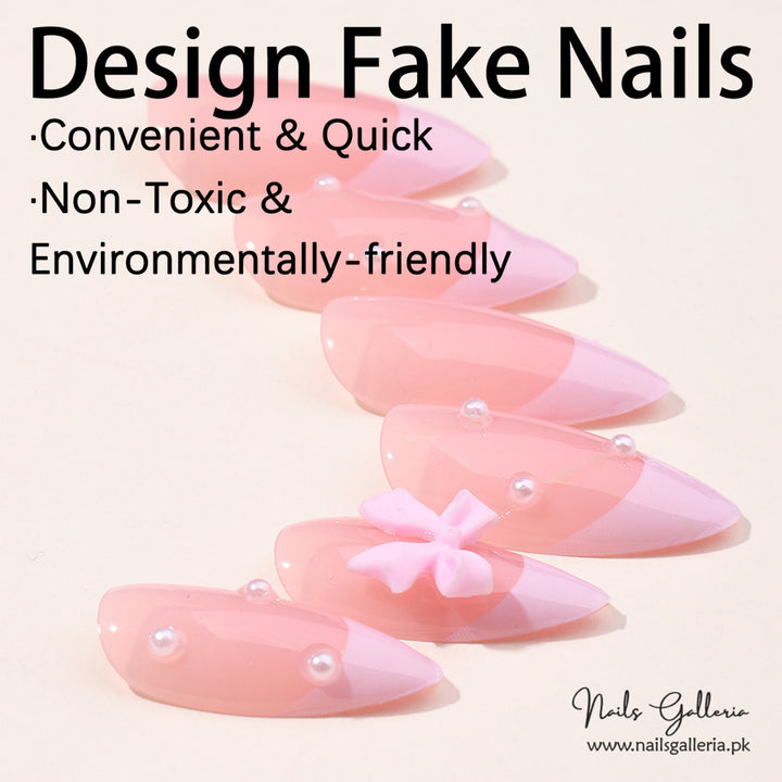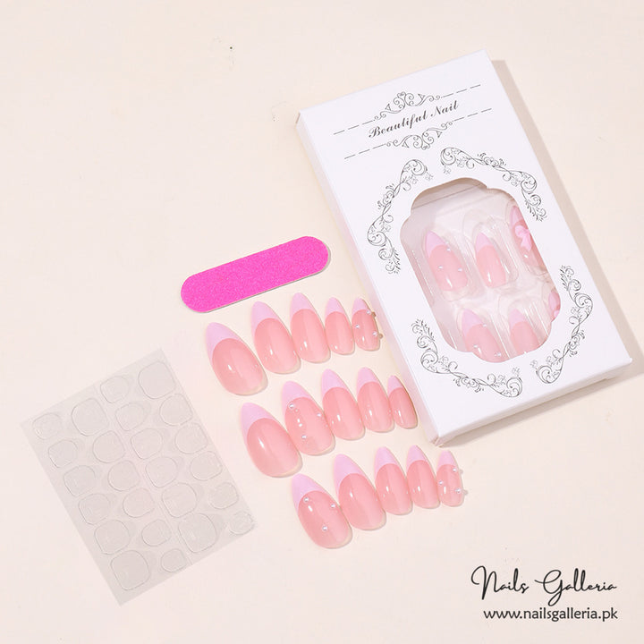 Delicate Touch of Pink – Press-On Nails (24Pcs) - Free Nail Kit Included
