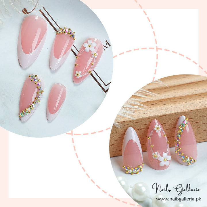 NOTE: Note that the photos of hand-applied nail designs may vary slightly in color and style due to lighting.