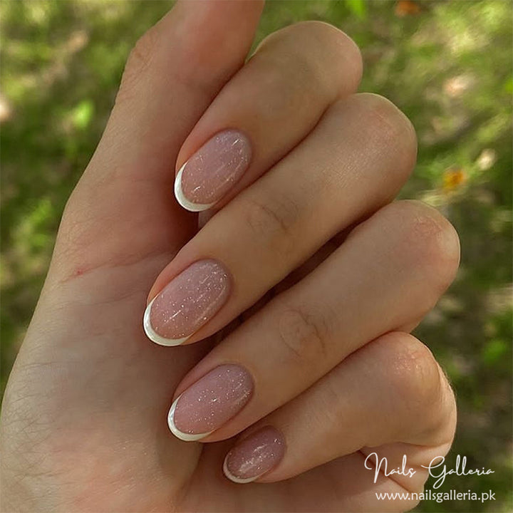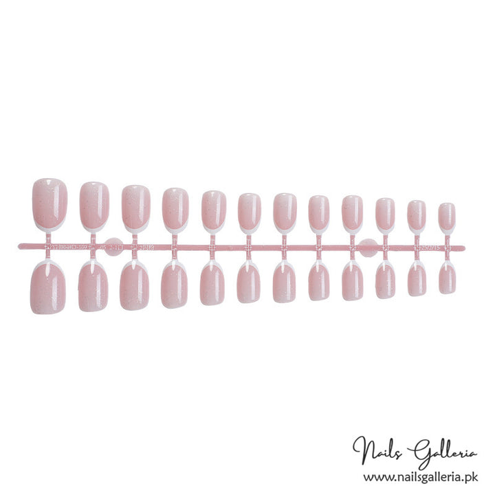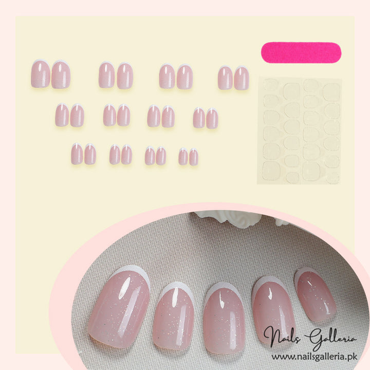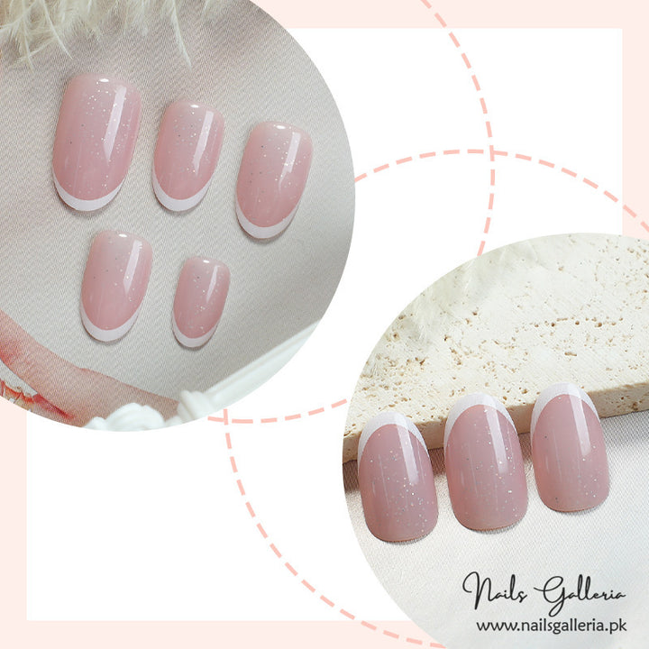 Elegant French Sparkle – Press-On Nails (24Pcs) - Free Nail Kit Included