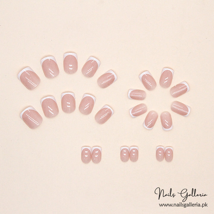 Elegant Square French Tip Press-On Nails (24 Pcs) - Free Nail Kit Included