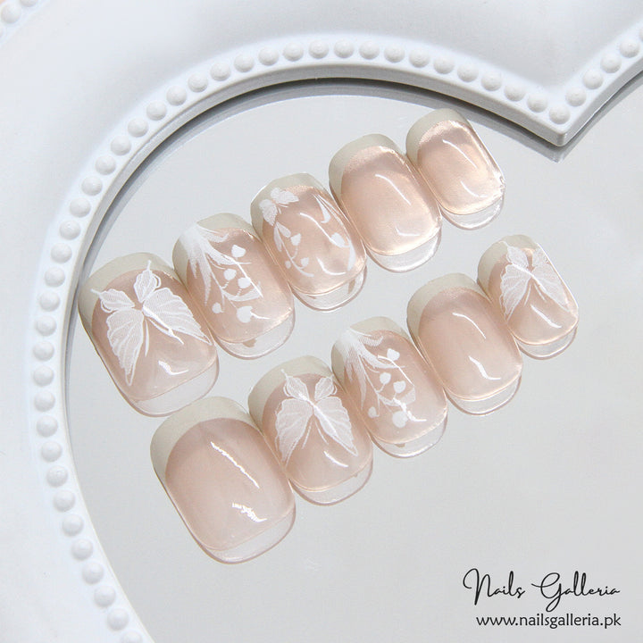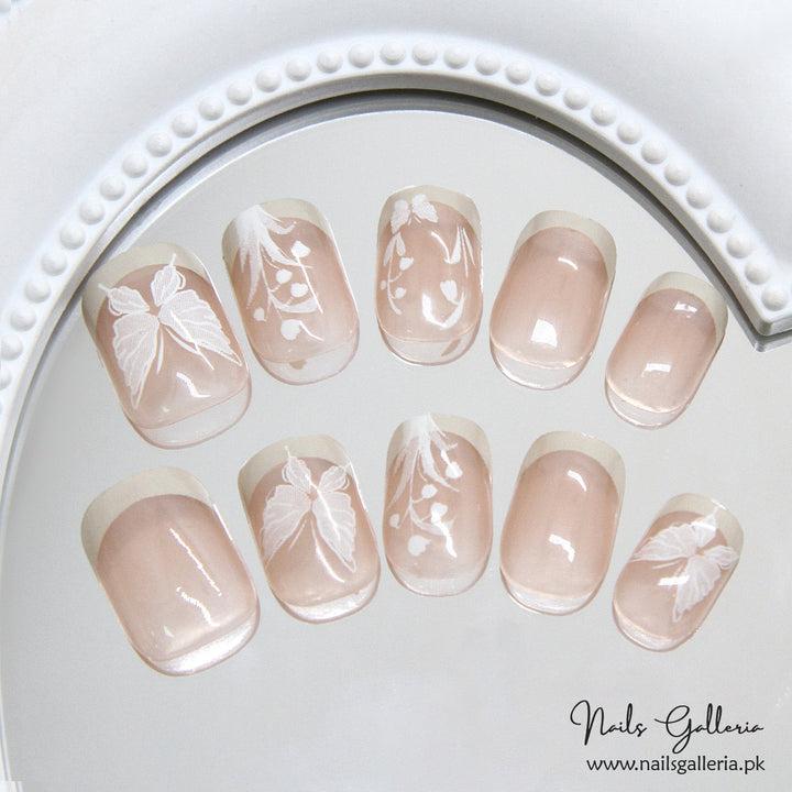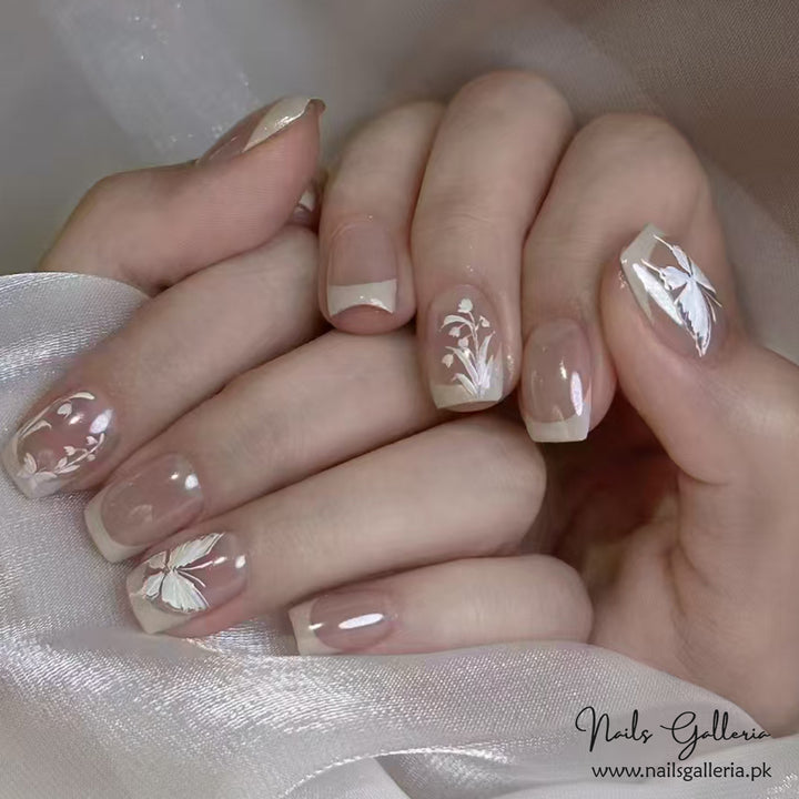 ๐ธ Floral French โ Press-On Nail Set (24Pcs) - Free Nail Kit Included