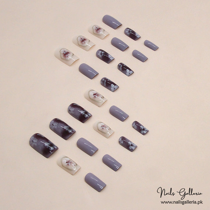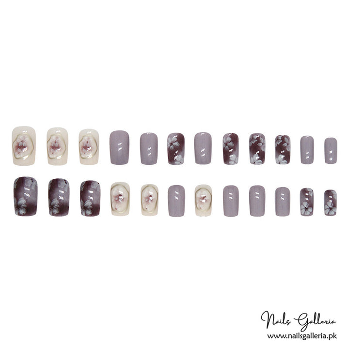 Floral Lavender Press-On Nails (24 Pcs) - Free Nail Kit Included