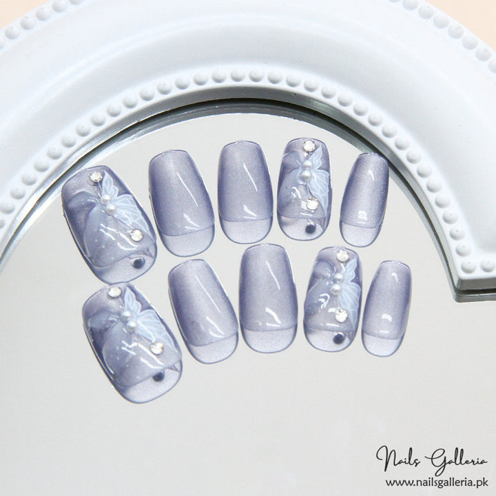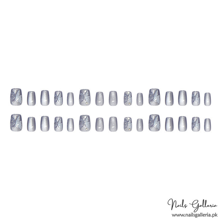 Ice Mist Butterfly Press-On Nails (24 Pcs) - Free Nail Kit Included