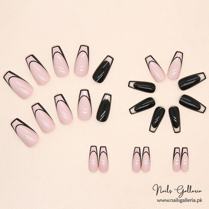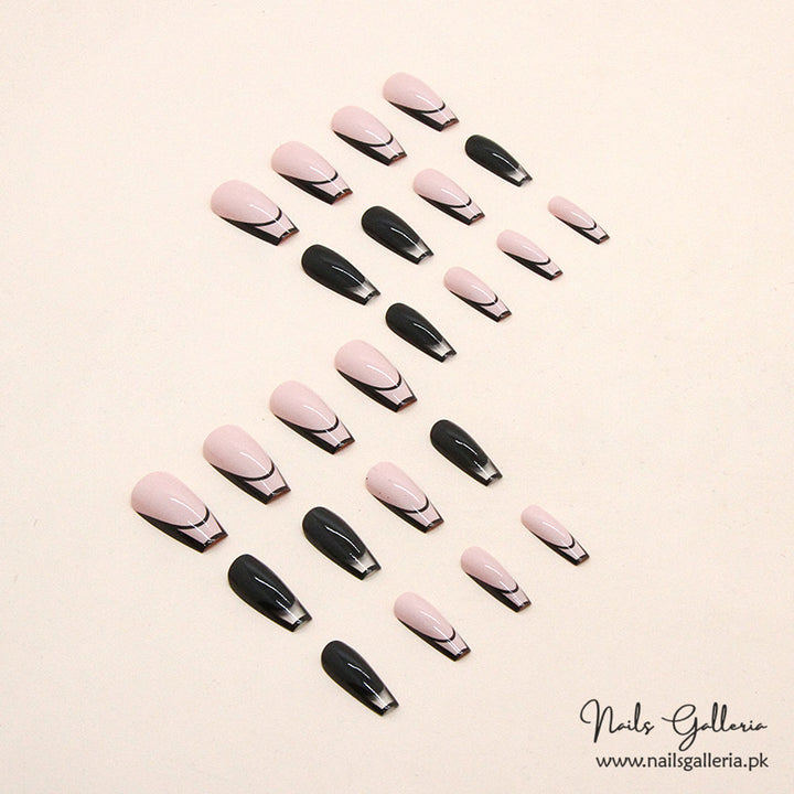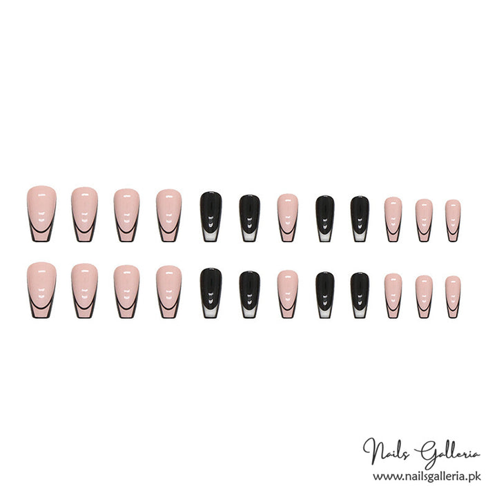 Monochromatic Contrast Press-On Nails (24 Pcs) - Free Nail Kit Included