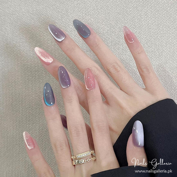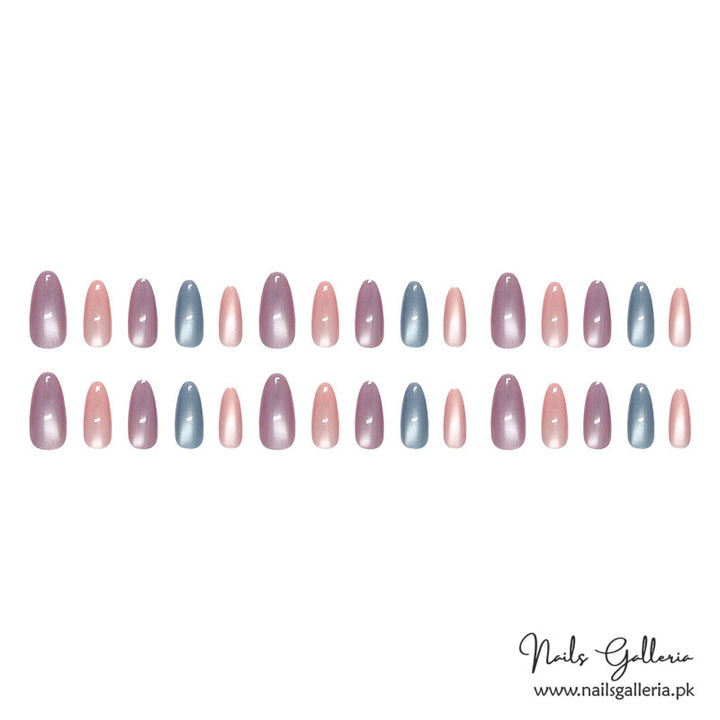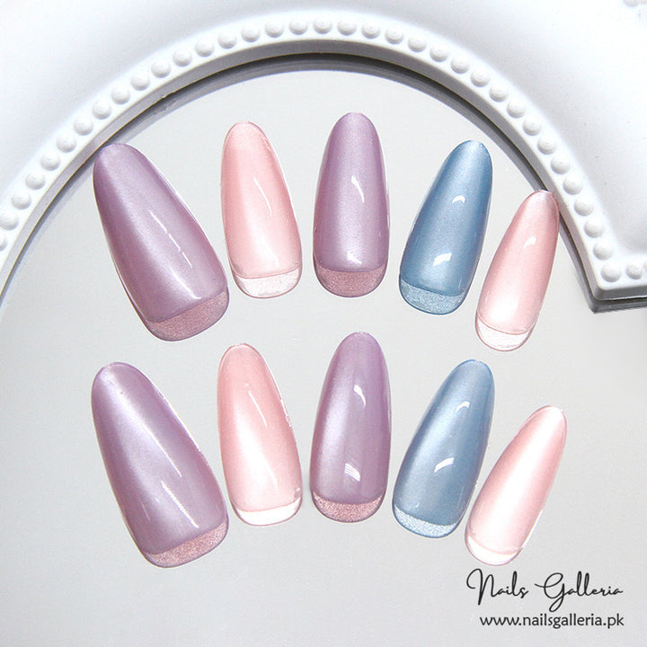 Step into a world of soft glam with the Mystic Mauve press-on nail set, featuring an enchanting blend of mauve, blush pink, and twilight blue in a stunning gradient finish. These nails bring a magical shimmer that’s perfect for effortless elegance and everyday charm. ✨💜