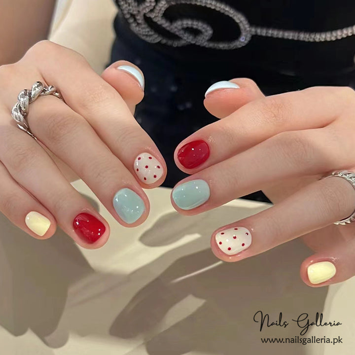 Playful Polka – Press-On Nails (24 Pcs) - Free Nail Kit Included