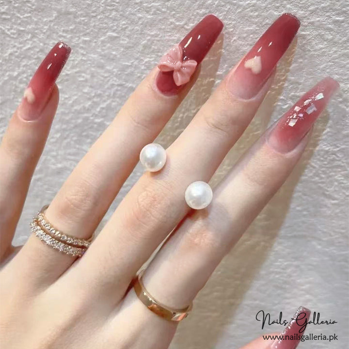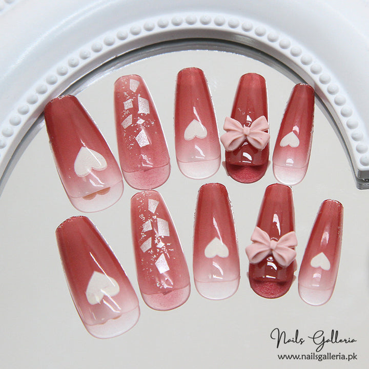 Romantic Hearts Press-On Nails (24 Pcs) - Free Nail Kit Included