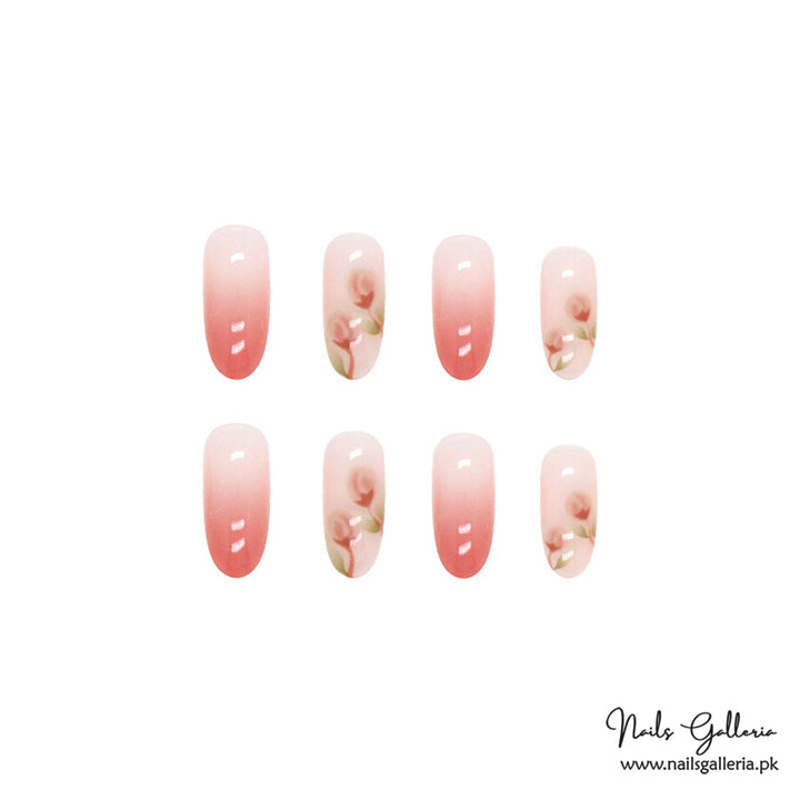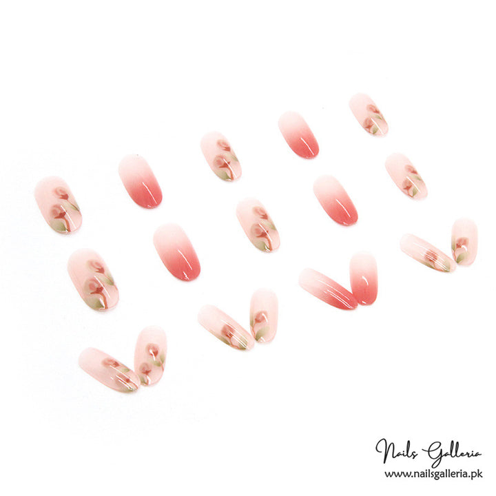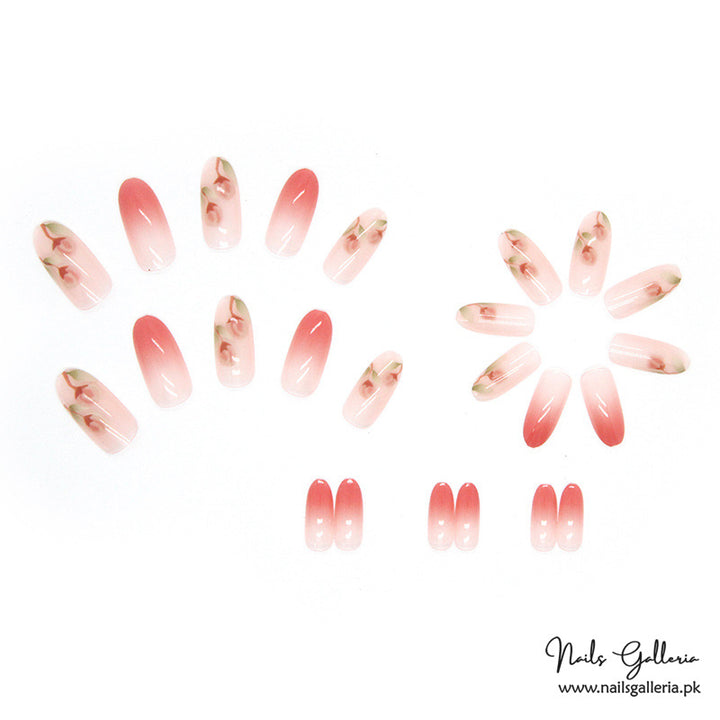 Rose Fade Floral Press-On Nails (24 Pcs) - Free Nail Kit Included