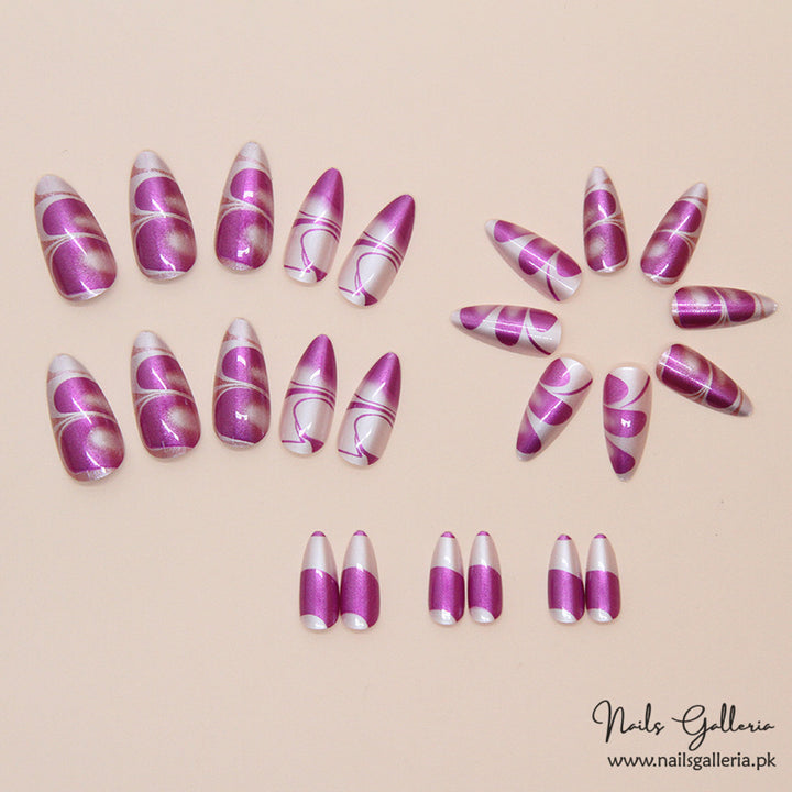 Royal Swirl – Purple & Silver Press-On Nails (24 Pcs) - Free Nail Kit Included
