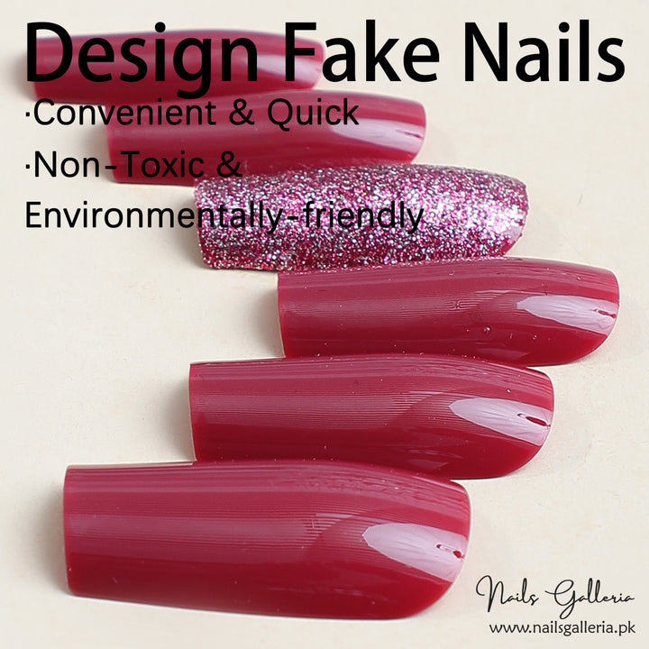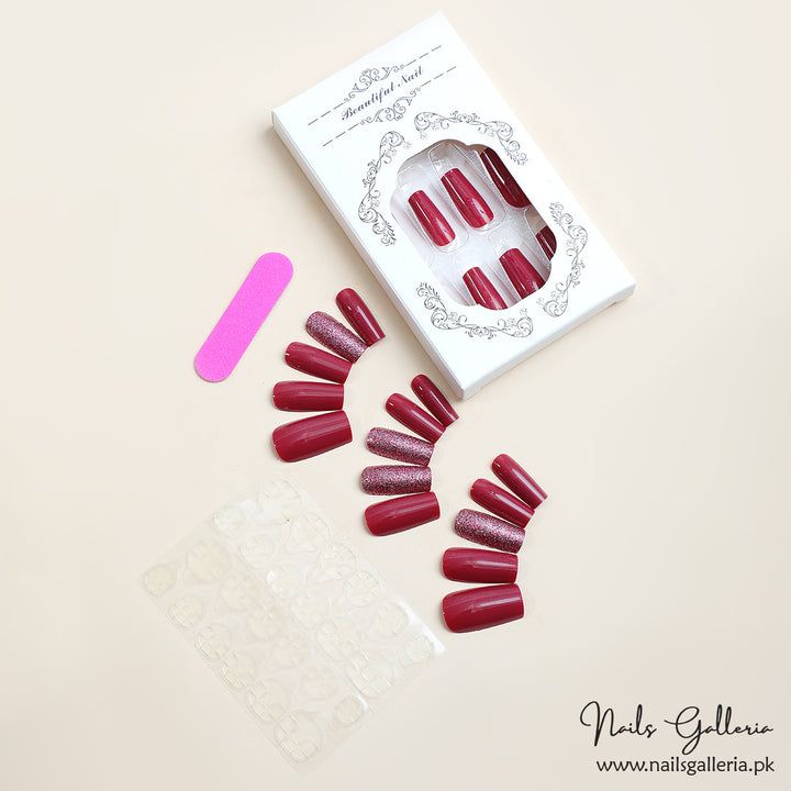 Ruby Red Sparkling Glitter – Press-On Nails (24Pcs) - Free Nail Kit Included