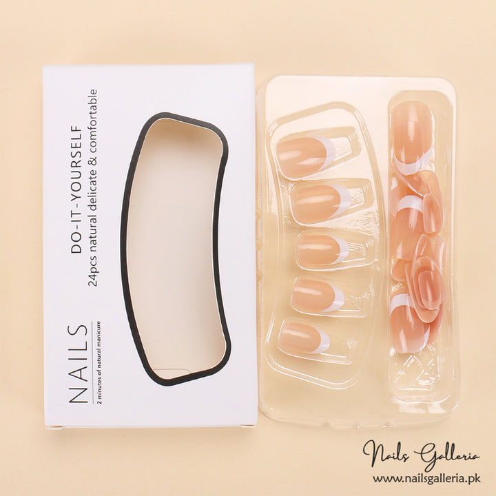 Soft Ombre French Manicure – Press-On Nail Set (24Pcs) - Free Nail Kit Included