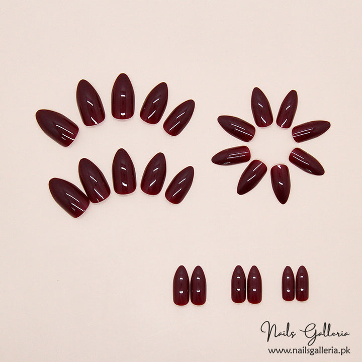 Stylish Burgundy Ombre – Press-On Nail Set (24Pcs) - Free Nail Kit Included