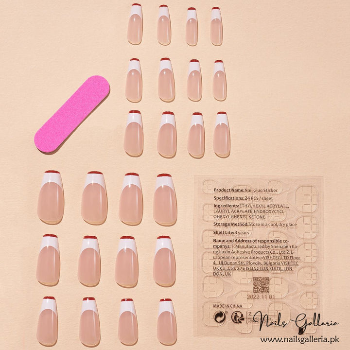 Stylish French Tip – Press-On Nails (24Pcs) - Free Nail Kit Included