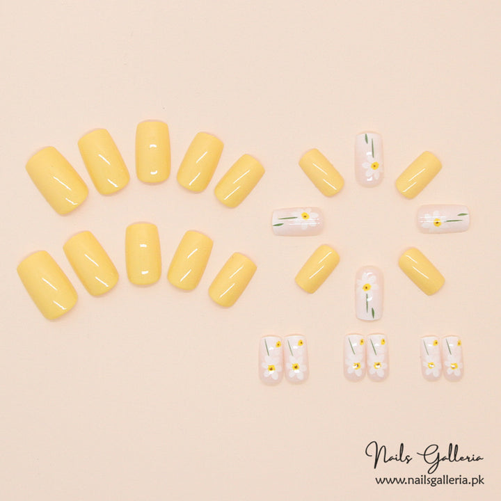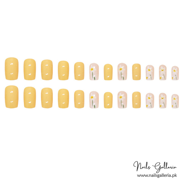 Sunflower Dreams Press-On Nails (24 Pcs) - Free Nail Kit Included