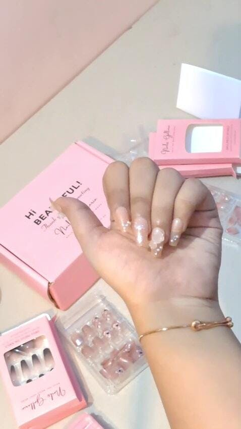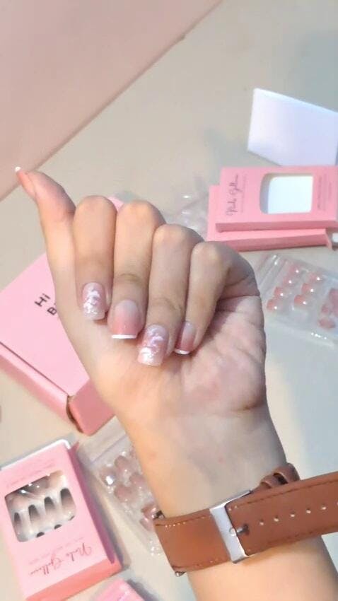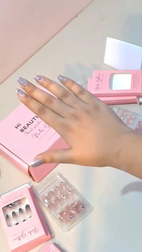 - Peel off the film & firmly press the press-on nail for 10-15 seconds