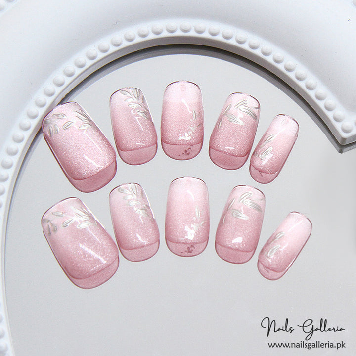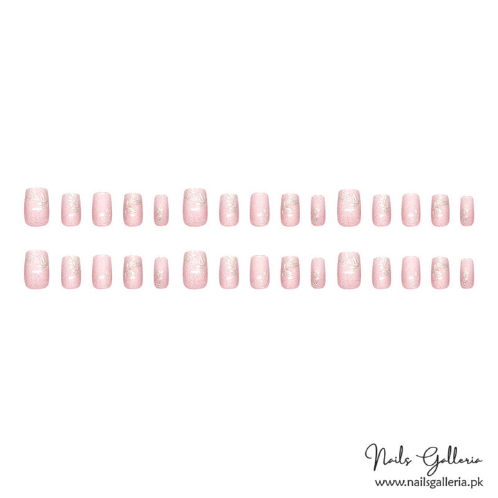 Whispering Petals – Press-On Nails (30 Pcs) - Free Nail Kit Included